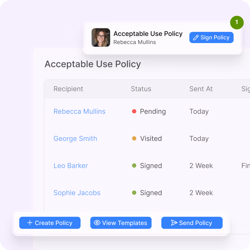 Create, distribute and track mandatory security policies in one place, giving you full visibility into who has read, accepted and completed every requirement.
