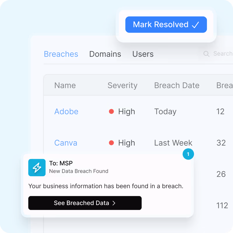Monitor the dark web for exposed employee credentials and prompt immediate user action, reducing the chance of account takeover or wider compromise.