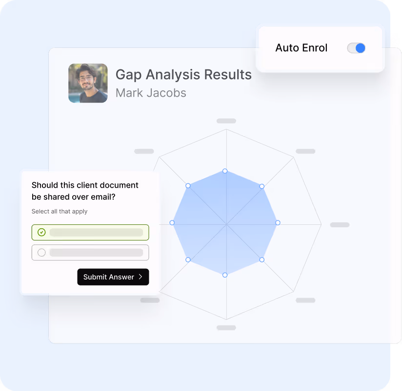Reduce risk faster and save hours of admin with AutoEnrol. Identify knowledge gaps and automate personalised training at a custom cadence.