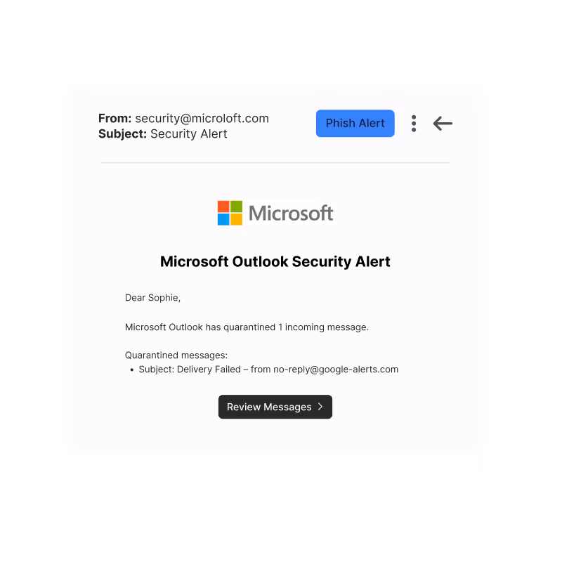 The Phish Alert Button centralises user reports, helping your SecOps or MSP team act quickly.