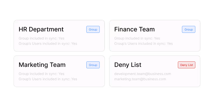 Select groups, deny lists, and mapping rules to maintain tidy, accurate directories.