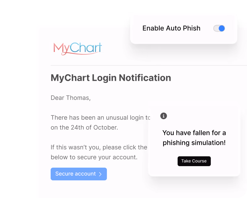 Our automated Human Risk Management platform identifies, trains, and monitors high risk users across all healthcare roles from clinicians to admin staff, keeping care delivery safe and compliant.